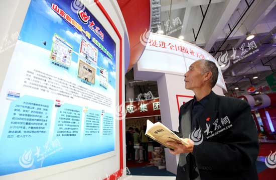 50年的讀報史,6年上網瀏覽新聞的經歷,72歲的安守財,是大眾報業集團的忠實讀者。在9月27日開幕的文博會上,安守財出現在大眾報業集團的展館前。他瀏覽著展館內所有的展示欄,對集團的每個子媒都有深深的了解。