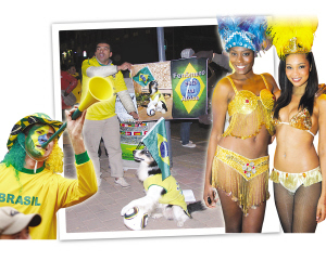 巴西球迷,喇叭、狗、桑巴舞娘一個(gè)都不能少。