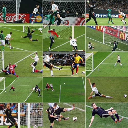 南非世界杯1/4決賽,德意志戰車繼續高歌猛進,繼4-1橫掃英格蘭后又上演一場大屠殺,憑借著托馬森-穆勒、弗雷德里希和克洛澤梅開二度,4-0輕取馬拉多納率領的阿根廷隊挺進本屆世界杯四強。這場比賽中,毫無疑問攻入兩球的克洛澤是最閃耀的明星,算上這兩個進球,他在世界杯上一共攻入14球,追平前輩蓋德-穆勒,在世界杯歷史射手榜上并列排在第二位,與排在榜首的羅納爾多(15球)僅差一球。