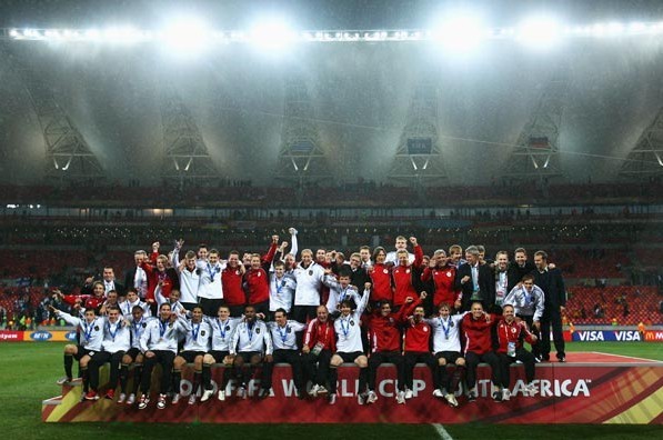 本場比賽,相對于烏拉圭幾乎排出了所有主力陣容,德國隊的出場陣容變動頗大。拜仁36歲的老門將布特意外得到首發機會,漢堡后衛奧戈也在本屆杯賽里首發亮相,前鋒卡考則繼小組賽對加納一役后再次成為首發。前鋒克洛澤盡管站在了趕超世界杯史第一射手羅納爾多的門檻上,但是受困于背傷,未能進入首發名單。除克洛澤外,最近身陷新聞暴風眼的隊長拉姆、波多爾斯基都染上了病毒性感冒坐在替補席上。因此,施魏因斯泰格戴上隊長袖標。