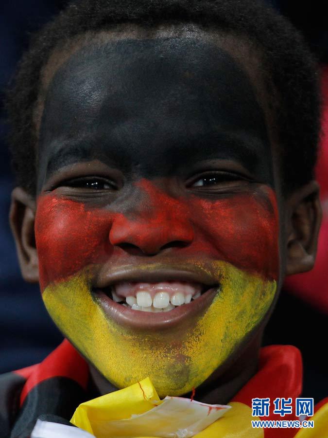 6月13日,一名德國隊球迷在比賽前。當(dāng)日,在德班進(jìn)行的2010年南非世界杯D組首輪比賽中,德國隊對陣澳大利亞隊。 新華社記者廖宇杰攝