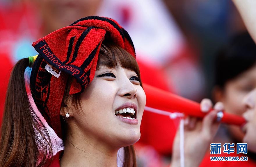 6月12日,一名韓國隊(duì)球迷在比賽開始前。當(dāng)日,在2010南非世界杯B組首場比賽中,韓國隊(duì)對陣希臘隊(duì)。新華社記者廖宇杰攝