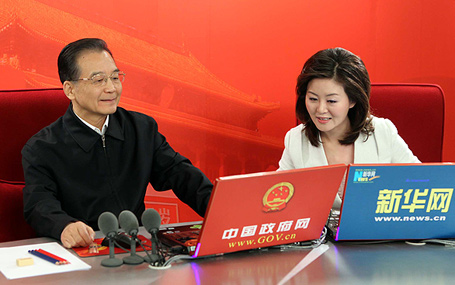 下午3點(diǎn),溫總理再次接受中國(guó)政府網(wǎng)、新華網(wǎng)聯(lián)合專(zhuān)訪(fǎng),這是繼去年2月總理首次與網(wǎng)民在線(xiàn)交流后,又一次與網(wǎng)民“零距離”交談。