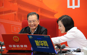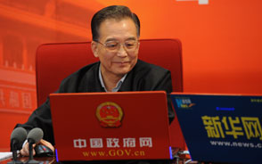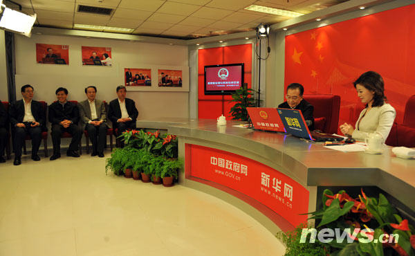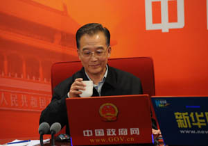 2月27日下午3時(shí),中共中央政治局常委、國(guó)務(wù)院總理溫家寶接受中國(guó)政府網(wǎng)、新華網(wǎng)聯(lián)合專訪,與廣大網(wǎng)友在線交流。圖為訪談現(xiàn)場(chǎng)。新華網(wǎng) 孫巍 攝