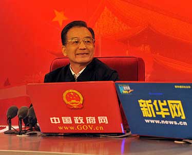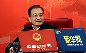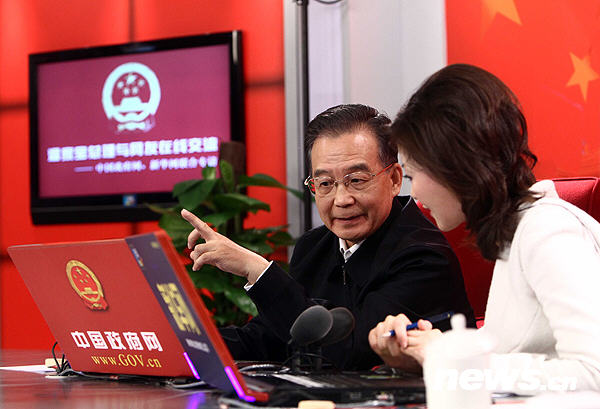 2月27日下午3時(shí),中共中央政治局常委、國(guó)務(wù)院總理溫家寶接受中國(guó)政府網(wǎng)、新華網(wǎng)聯(lián)合專(zhuān)訪,與廣大網(wǎng)友在線交流。他說(shuō),今年是中國(guó)經(jīng)濟(jì)最復(fù)雜的一年,對(duì)發(fā)展有信心。新華社記者劉衛(wèi)兵攝
