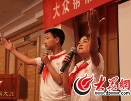小學生為大眾網總編輯朱德泉系上紅領巾