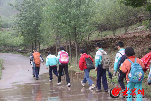 5月17日下午5點左右,臨沂市沂水縣西部的群山里云環霧繞、細雨蒙蒙。在夏蔚鎮透明崮村旁的環山公路上,一群高矮不一的孩子正冒雨排隊往前走。他們都是夏蔚鎮透明崮教學點剛剛放學的學生,他們的家就散落在周圍大山深處的十幾個自然村里,最遠的學生要翻越一座大山,走將近兩個小時才能到家。