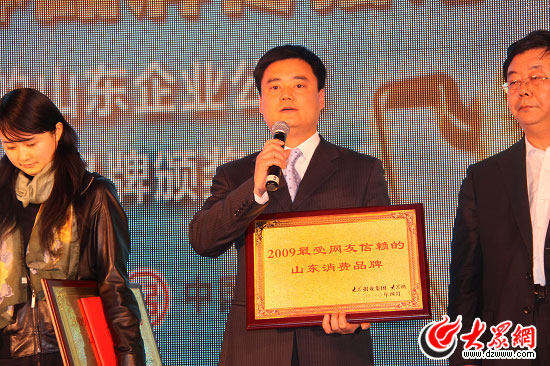 今天能夠獲得“2009網民信賴的山東消費品牌”,要深深地感謝大眾報業集團、大眾網,感謝大家能夠給安利公司這樣一個成長的機會。