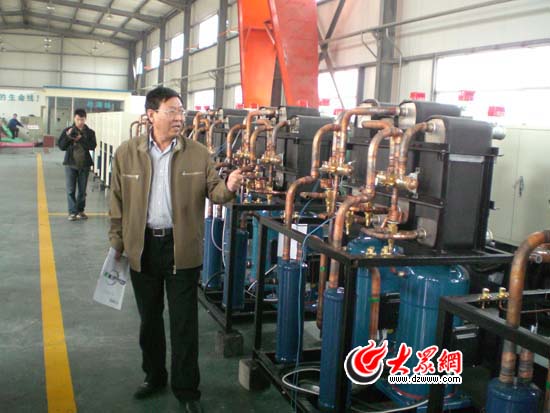 海利豐工作人員向記者介紹地源熱泵供暖系統