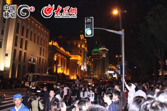 大眾網(wǎng)-移動(dòng)G3上海4月30日快訊(特派記者 隋喬 劉國棟)19:00,此時(shí)的外灘人頭攢動(dòng),周圍建筑的燈光秀璀璨炫目,來自祖國各地和世界的游客紛紛聚集于此,在上海這一地標(biāo)準(zhǔn)備觀看今晚世博會(huì)的焰火表演。