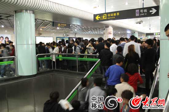 南京東路地鐵出口處也排起長隊(duì)