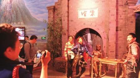 游客在“寬窄巷子”前合影留念