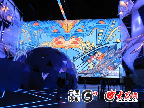 懷揣著對未來的遐想,游客們走進“城市和諧廣場”。記者在現場看到,展廳周圍環繞著500平方米超大可觸摸屏幕,正在播映一部宏大制作的“未來動畫電影”,使參觀者沉浸在它不可思議的想象中。西班牙INGENIAqed設計團隊負責人介紹說,他們與中國藝術家卜樺合作,將展廳打造成一個斑斕的夢想世界,帶領參觀者進入科幻電影中的夢幻城市。