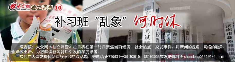 已經(jīng)在濟南從事了近十年教育培訓工作的王先生告訴記者,辦補習班其實很簡單,只要在居民區(qū)或?qū)懽謽抢镒鈳组g房子,擺上桌椅掛上黑板,再請幾個老師就可以開課了。條件好點還會安個空調(diào),擺個飲水機或開水器,提供飲用水,差點的連這些也省了。至于辦補習班需要的各種手續(xù)和證件,王先生說,很多補習班都是能省則省,能免則免,反正也很少有人查,“真正有教育部門頒發(fā)的辦學許可證的沒幾個”。