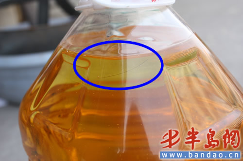 “怎么也算是個大品牌,沒想到也會發生這種事!”近日家住青州的孟先生稱過年朋友送了一瓶四升的胡姬花花生濃香調和油做禮品,近日家里沒有油了,便拿出這瓶由來準備食用,“由于東西不是自己買的,我在開封之前就很本能的拿著看了看,不料發現了根頭發,真是嚇了我一跳。”