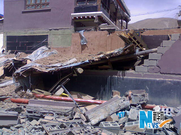 4月14日用手機拍攝的青海玉樹州結古鎮地震現場。當日早上7時49分,青海省玉樹藏族自治州玉樹縣(北緯33.1度,東經96.7度)發生7.1級地震。新華社發(張紅栓 攝)