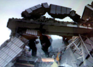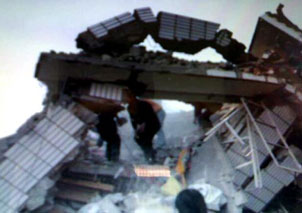 震區樓房被掀起