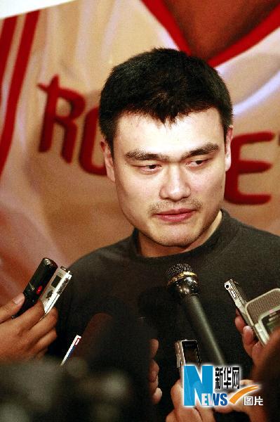 4月14日,休斯敦火箭隊球員姚明在賽前接受媒體采訪宣布,他昨天晚間聽到青海地區(qū)發(fā)生地震,并且有幾百名同胞遇難,心里非常難過。他說他的基金會將立即為青海地震賽區(qū)募集善款,并且根據(jù)震區(qū)情況實施下一步援助計劃。圖為姚明回答記者提問。新華社發(fā)