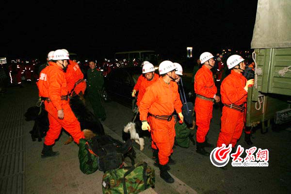 大眾網4月15日訊(記者 馮煒程 通訊員 張海波 邱會東)正在緊急馳援青海玉樹地震災區的山東省消防總隊應急救援隊,已于15日凌晨飛抵青海西寧,并將于今天從西寧轉機趕赴災區實施救援。 4月14日22時30分,山東消防總隊接到公安部消防局趕赴青海玉樹開展地震救援的命令后,已經集結待命的我省第一批地震救援消防官兵立即趕赴機場,于15日凌晨0時40分乘坐山東航空公司SC901次航班從濟南遙墻機場起飛,在3時15分到達青海西寧機場。 為切實開展好此次地震救援行動,山東消防總隊共調集了濟南、青島、泰安、淄博、東營、濟寧、日照、德州、聊城、濱州等10個支隊和總隊機關的186名搶險救援骨干力量,攜帶搜救犬25頭,切割、破拆、發電、照明、搜救、救援等救援器材312件(套)。其中主要包括23臺生命探測儀和78件破拆器材。 因玉樹海拔在3800米以上,對極有可能出現的高原反應,省消防總隊吳志強總隊長要求全體醫護人員要高度重視每一名救援隊員的身體狀況,對出現的情況要立即處置,不能有絲毫馬虎。 在飛抵西寧后,青海省公安廳與山東省消防總隊救援隊順利進行對接,15日上午9時救援隊趕赴當地機場聯系專機分兩批趕赴震區玉樹。