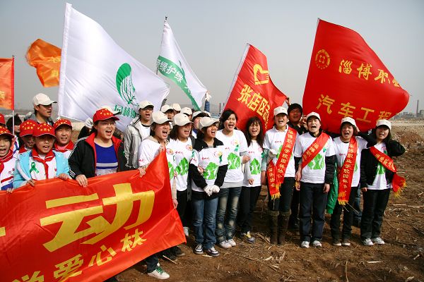 第三十二個植樹節來臨之際,恰逢我們美麗家鄉淄博舉辦第22屆山東省運動會之際。為打造綠色生態城市,提高全民低碳意識,由綠絲帶公益志愿者發起的“生態淄博·綠色省運——山東省萬名志愿者義務植樹活動大型公益活動”熱烈展開了。3月11日至13日,先后有1300多名熱情的綠絲帶人,在周村金山、張店齊王山(炒米山)名典生態彩葉園林,參加了義務植樹。綠絲帶公益牽頭,紫竹林志愿先鋒隊、百事可樂志愿先鋒隊、西六路小學志愿者、職業學院園林協會、國際學院、汽車工程、市直一幼、自來水公司、三知三幼兒園、魯中幼兒園、新華小學、上海交大齊魯商學院等等數十只社會公益積極團隊,通過廣播、報紙、電視、網絡等各路媒介聯系到了一起,為了共同的綠色心愿,自費購買了百余棵核桃樹苗幫助高位截癱殘疾人朋友寧承東種了一片果林,又在名典生態彩葉園林種植下10000余株進口海棠樹。海棠花,是淄博市的市花,“美洲觀賞海棠”的栽植更豐富了我市海棠花樹種資源,增添了風景區景觀效果。