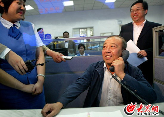 山東省省委常委、濟南市委書記焉榮竹到“12345”熱線傾聽市民心聲。(資料片)