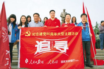 踏訪中國共產(chǎn)黨披荊斬棘、一路走來的足跡,重溫90年光輝歷程,感悟新一代歷史責(zé)任,是許多地方喜迎活動的重要內(nèi)容。5月4日,來自全國各地的90名大學(xué)生相聚人民日報(bào)社,參加“追尋”活動出征儀式。他們將沿著中國共產(chǎn)黨誕生、發(fā)展、壯大的紅色足跡,尋訪若干在黨史上具有重大意義的紀(jì)念地。