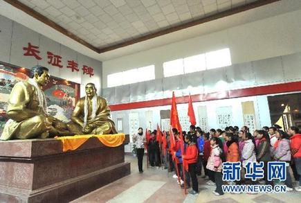4月22日,少先隊(duì)員們參觀紀(jì)念館朱德總司令與五世格達(dá)活佛紀(jì)念塑像。建黨90周年之際,四川省甘孜藏族自治州甘孜縣第三完全小學(xué)的少先隊(duì)員們來到縣城《朱德總司令與五世格達(dá)活佛紀(jì)念館》,參觀當(dāng)年紅軍長征革命歷史,緬懷革命前輩與愛國宗教人士格達(dá)活佛的真誠友誼和民族團(tuán)結(jié)傳奇故事。新華社記者陳海寧攝