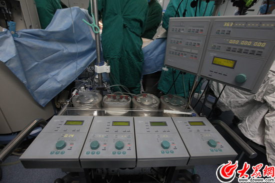 體外循環機待命,準備建立體外循環。