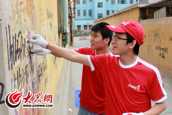 棗莊安利志愿者趙富貴,周似錦清除“牛皮癬”