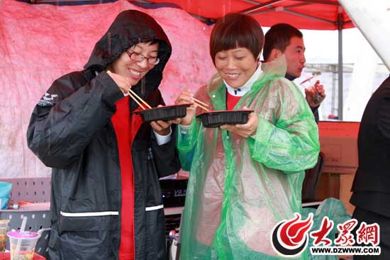 [提要] 雨中共餐,其樂融融(安利志愿者:關(guān)薔)
