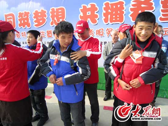 安利志愿者趙秉正為特殊教育學校的孩子們捐贈學習用品和御寒衣物