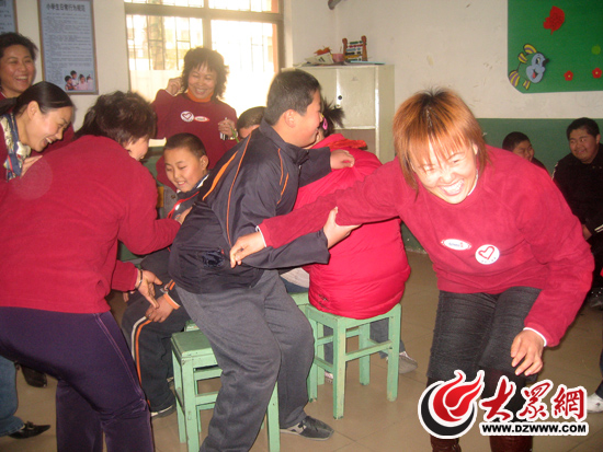 濟寧安利志愿者陳敏與特教學生玩游戲