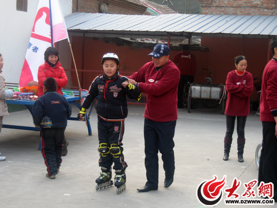 濟寧安利志愿者張磊教幫教學(xué)生學(xué)習(xí)輪滑