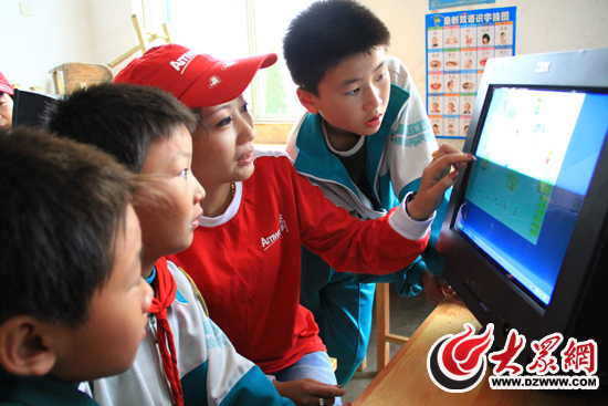 臨沂平邑縣卞橋鎮(zhèn)東家莊小學愛心捐助活動志愿者教學生操作電腦