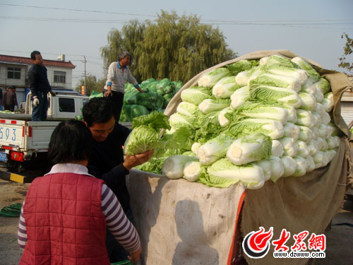 幾家菜農(nóng)的白菜被淄博來的愛心企業(yè)收走,當(dāng)天,該企業(yè)共收購了6000斤大白菜。