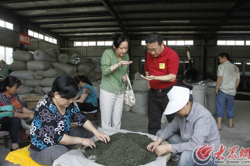山東愛心企業(yè)代表在北川縣五星茶業(yè)有限公司廠房?jī)?nèi)考察