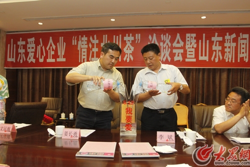 山東駐北川工作聯(lián)絡(luò)處副主任殷濤在致辭時(shí)說(shuō),“5.12”地震以來(lái),山東把北川縣作為自己的第141個(gè)縣全力援建,除了政府的援建之外,山東各界也投入社會(huì)力量參與到援川活動(dòng)中,其中由大眾網(wǎng)、生活日?qǐng)?bào)、山東電視生活頻道、山東廣播新聞?lì)l道共同參與的新聞援川活動(dòng)“今夏請(qǐng)喝北川茶”經(jīng)過(guò)三年持續(xù)不斷的開展,已經(jīng)深入到山東各地,北川茶也成為北川在山東的一個(gè)重要標(biāo)志,希望幾家媒體繼續(xù)努力,把“今夏請(qǐng)喝北川茶”活動(dòng)辦得更好,讓這個(gè)活動(dòng)成為連接魯川人民感情的紐帶。