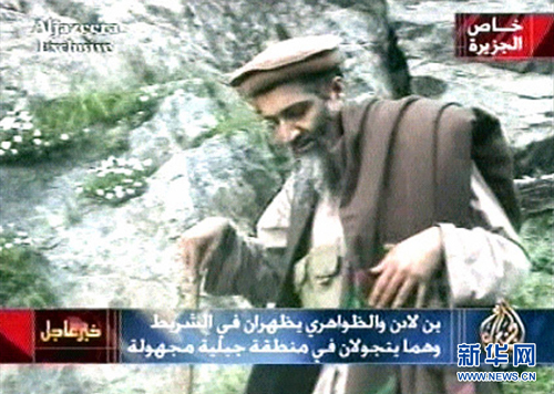 這張截取于2003年9月10日卡塔爾半島電視臺的資料電視畫面顯示本·拉丹在野外跋涉的鏡頭。新華社/路透