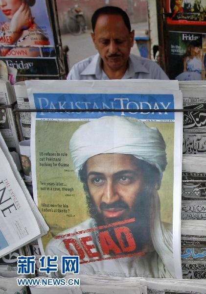 這是巴基斯坦拉合爾的一名商販?zhǔn)圪u(mài)刊登本拉丹已死新聞的報(bào)紙。 新華社路透社