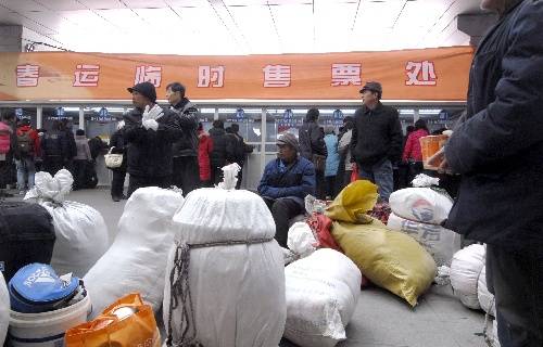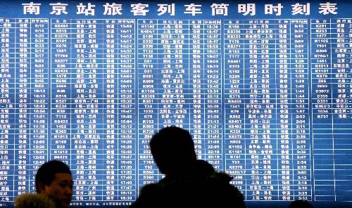 南京(江蘇),2011年1月9日 2011年春運(yùn)首日火車票開始發(fā)售 1月9日,旅客在南京火車站售票大廳查看列車時刻表。 當(dāng)日,2011年春運(yùn)首日(1月19日)火車票開始發(fā)售。 新華社發(fā)(王新 攝)