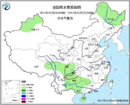 25日08時(shí)至26日08時(shí),新疆北部、黑龍江北部、西北地區(qū)東南部、西南地區(qū)中東部和北部、湖北西部、江南西部、廣西中西部、海南東北部等地有小到中雪(雨)或雨夾雪,其中,新疆沿天山的部分地區(qū)有中到大雪,云南東北部、貴州中西部的部分地區(qū)有凍雨。新疆北部有4~6級(jí)風(fēng),山口地區(qū)風(fēng)力可達(dá)6~8級(jí)。臺(tái)灣海峽、南海中北部海域?qū)⒂?~8級(jí)、陣風(fēng)9級(jí)的東北風(fēng)。