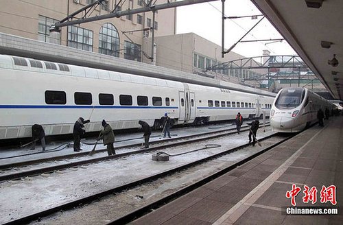 針對目前南方雨雪冰凍天氣,鐵道部要求相關鐵路局繼續積極做好應對處置工作。動車組運行線路或區段遇大雪覆蓋線路,工務部門要迅速報告,并及時采取降速限速措施;車輛部門要加強動車組庫內檢查,及時清除車底結冰,防止運行中刮壞設備。各鐵路局要密切關注雨雪冰凍情況,加強對線路、道岔、牽引供電等室外設備檢查、監控,及時組織除雪除冰,確保運輸暢通;注意做好臨時搭建的風雨棚頂的積雪清掃,防止因積雪過厚導致垮塌。