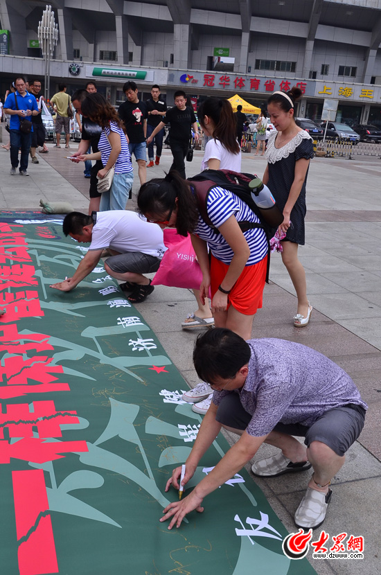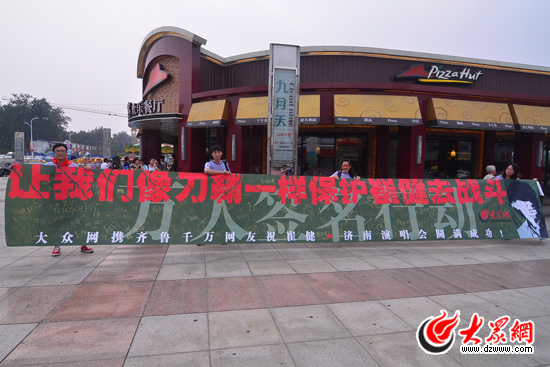 為配合崔健演唱會,大眾網(wǎng)在演唱會場外組織了萬人簽名活動,精心設(shè)計的橫幅很快就招來了不少崔健的鐵桿歌迷,來來往往簽名的人們絡(luò)繹不絕。來自昆明的李先生向記者表示,自己從十幾歲起就開始聽崔健的歌,到現(xiàn)在已經(jīng)有20多年了,上一次19年前的濟南演唱會,李先生也是親歷者之一。對于這次演出,李先生非常期待,為此專程從昆明趕到了濟南。