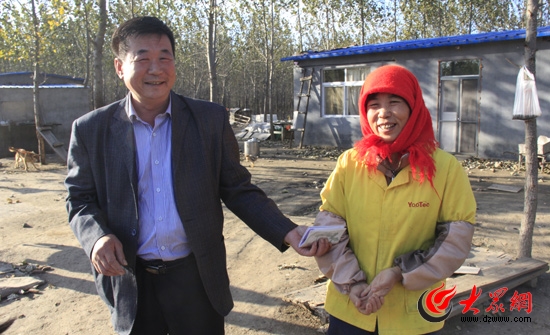 大眾網走基層問民生采訪小組記者韋輝在經濟林下采訪養殖戶孫立強夫婦。(曹亮 攝)