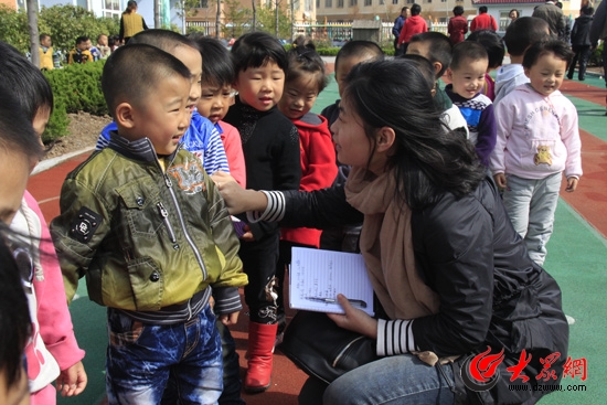 大眾網(wǎng)走基層問(wèn)民生采訪小組記者劉欣走進(jìn)棘洪灘下崖幼兒園進(jìn)行采訪。(曹亮 攝)