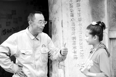 “雷鋒傳人”郭明義和他長期資助的吳一凡在一起。 新華社資料照片