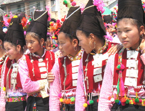 未婚婦女留長發盤辮,穿白、藍色對襟銀扣上衣,黑、藍色長褲。系繡花飄帶黑布裙。已婚婦女梳發髻,包黑布包頭,下著長筒裙,系黑布圍裙。