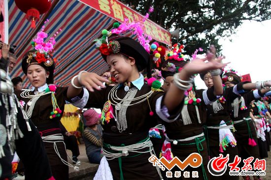 阿昌族最大的民族傳統節日會街節上,阿昌族女孩們盛裝列隊“路演”。