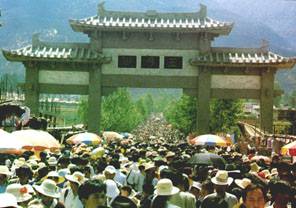 關(guān)于三月街的貿(mào)易集市盛況,在明清之際的許多文獻中都有記載。如李元陽的《萬歷云南通志》、《徐霞客游記》等都對三月街進行的騾馬、木材、藥材、毛皮、銅鐵等大宗的土特產(chǎn)品貿(mào)易情況有詳備的記載。徐霞客是這樣記述三月街的:"俱結(jié)棚為市,環(huán)錯紛紜。……千騎交集。……男女雜沓,交臂不辨。……十三省物無不至,滇中諸蠻物亦無不至。"再現(xiàn)了三四百年前三月街"諸商云集,環(huán)貨山積"的繁盛狀況。