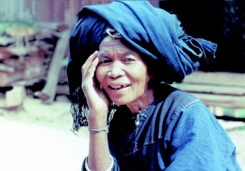 布朗族婦女一般都頭挽發髻,發髻通常戴各種飾品,尤其喜歡別一枚叫“戛絲戛中”的銀簪,銀簪上有精美的“三尾螺”圖案。有些婦女平常包頭,其式樣是用白布帕巾纏繞成三尾螺的樣子。布朗族婦女與三尾螺的關系,是緣于一段美麗的傳說,人們為了紀念美麗的姑娘億英,便把鑄有三尾螺圖案的銀簪別在發髻上,期望她的遭遇和不幸永遠不再出現,幸福美滿的婚姻能降臨在每個普通人身上。